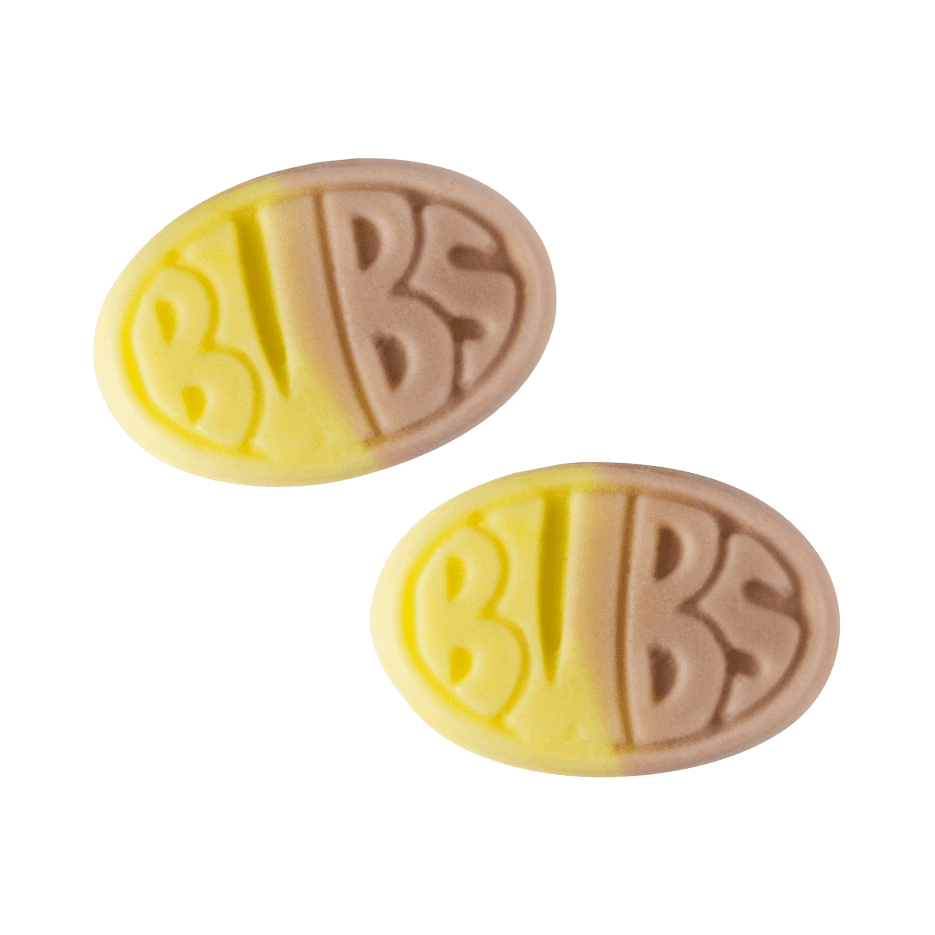 Glucose-fructose syrup, sugar, cornstarch, water, acidity regulators (malic acid, sodium citrate), potato protein, flavours, colours (E150d, E100), coconut oil, glazing agent (carnauba wax)